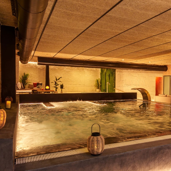 El spa te invita a pasar 90 minutos en su spa sumergiéndote en el descanso absoluto, con una piscina central de chorros, tumbonas de burbujas y cuellos de cisne. Siente la tranquilidad incluso desde la zona con sofás y mesas, el cual ofrece servicio de refrescos y zumos (de pago). Y, por si fuera poco, deja que las manitas expertas de los masajistas te ayuden a aliviar esas tensiones acumuladas después de una larga semana, todos lo necesitamos de cuando en cuando. Ah, ¿que buscabas algo todavía más especial? En este hotel han puesto el foco en todos los detalles, añade una botella de cava y bombones para ponerle la guida al pastel.