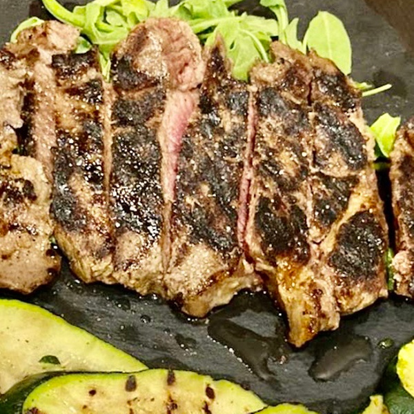Corte de ternera de alta calidad cocinado en su punto y servido con rúcula, parmesano y tomate Cherry. Gluten y lacteos