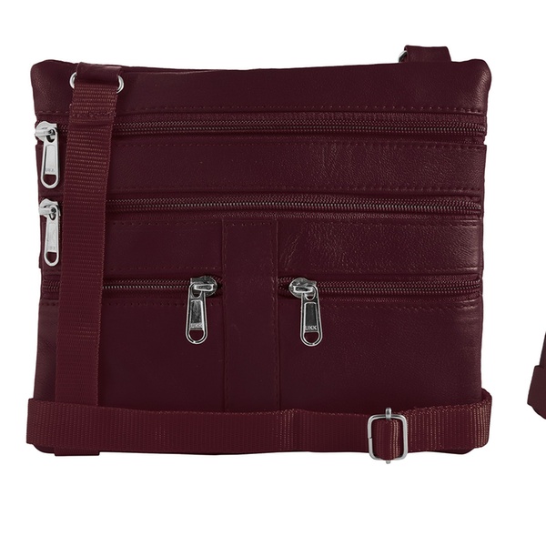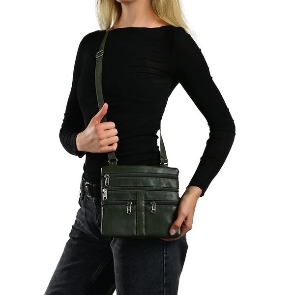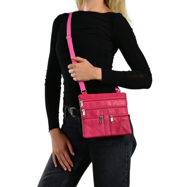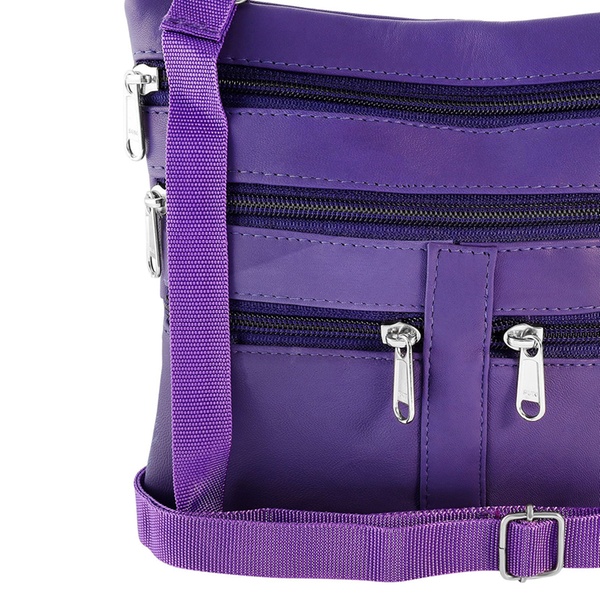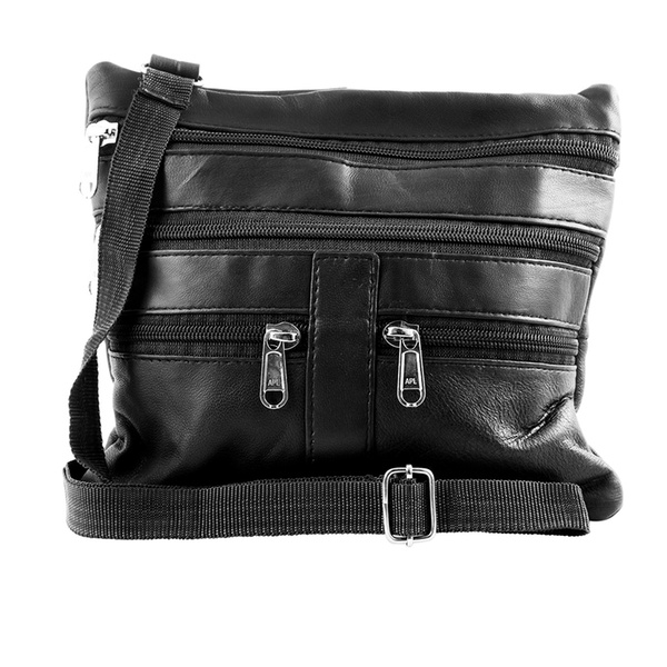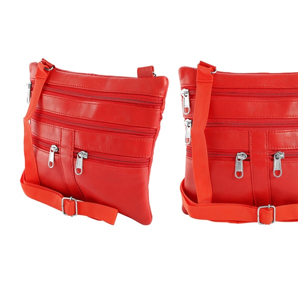 - En la parte frontal del bolso se encuentran cuatro compartimentos, todos con cierre de cremallera