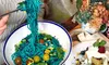 Disfruta de un menú vegetariano con platos creativos que incluye entrante para compartir, principal y postre, en Restaurante Superchulo en Malasaña, con un ambiente único y colorido