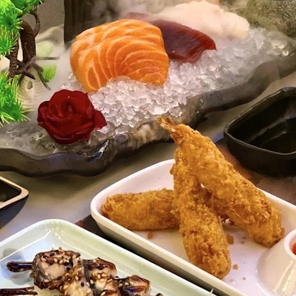 El buffet incluye comida japonesa y tailandesa, y por la noche también se sirve marisco