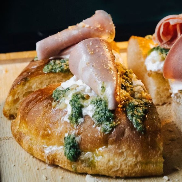 - El rey: mortadella, pesto, parmesano reggiano (Recomendado para 2 personas)