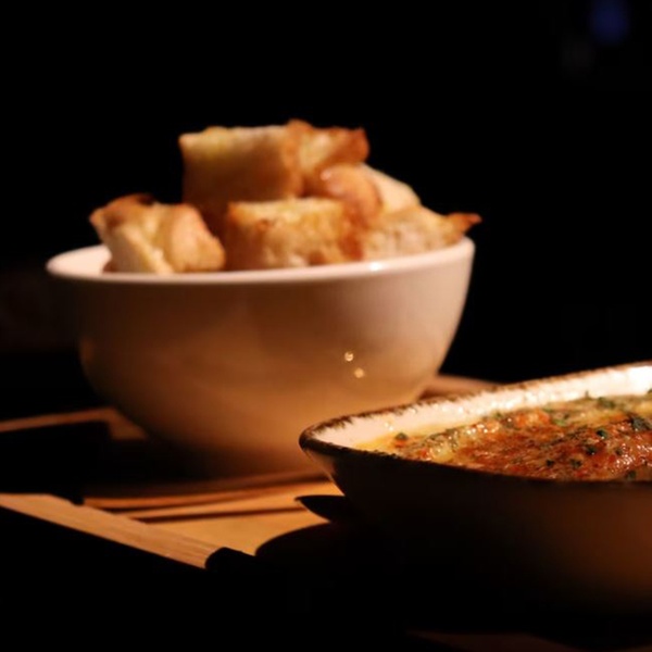 - Hummus de garbanzos y focaccia: cremoso hummus de garbanzos con aceite de oliva y especias, acompañado de focaccia esponjosa y dorada. Perfecto para untar y compartir
