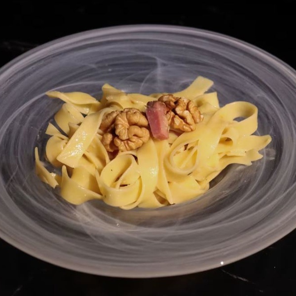 - Fetuccine con crema de gorgonzola, mota y nueces: Pasta fresca al huevo cubierta con crema de gorgonzola, mota y nueces