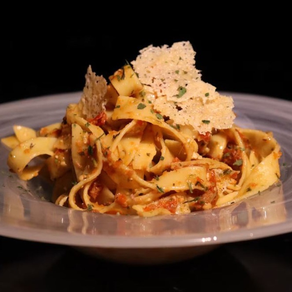 - Fettuccine con pesto de tomate seco: Pasta fresca al huevo cubierta con pesto de tomate seco