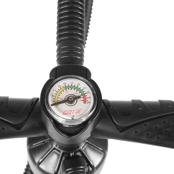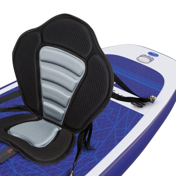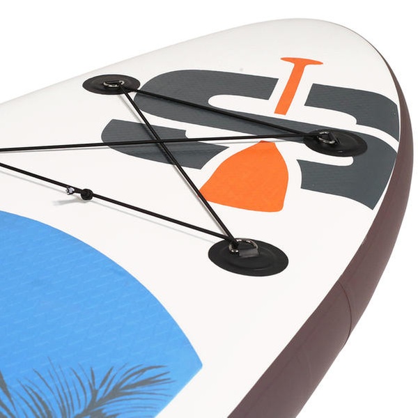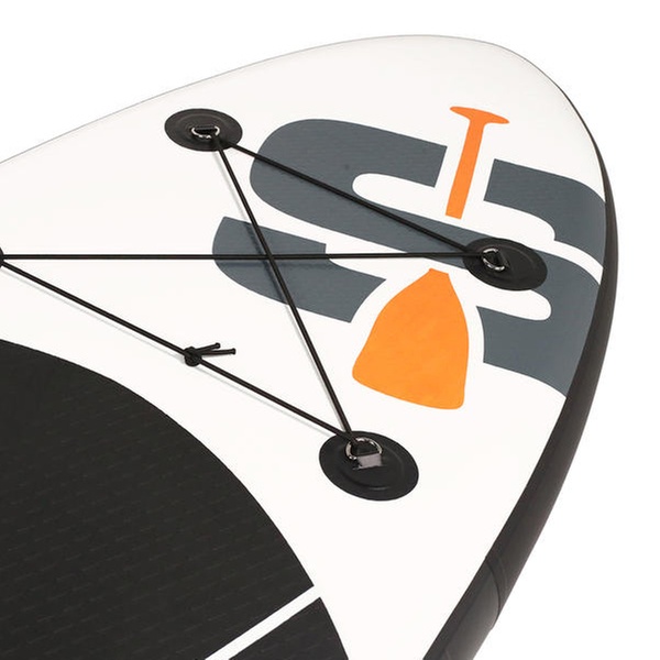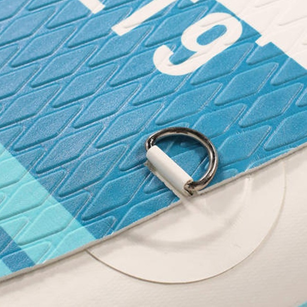 Válvula de inflado rápido que soporta altas presiones (Presión recomendada: 15PSI) 2 aletas laterales desmontables con llave de seguridad para dirigir el stand up paddle Asa de transporte ergonómica para facilitar el transporte de la tabla Almohadilla antideslizante de espuma EVA con forma de diamante para una navegación cómoda 4 anillas y red de almacenamiento para llevar tus cosas en la parte delantera de la tabla 4 cierres para instalar un asiento de kayak extraíble