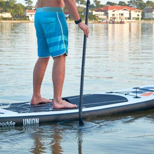 Este stand up paddle es ideal para iniciarse en la actividad durante los paseos lacustres. Muy estable y rígida gracias a sus 32 pulgadas de ancho y 6 pulgadas de grosor. Está especialmente indicada para la práctica en familia. En efecto, la tabla permite acomodar fácilmente a otro pasajero en la parte delantera.