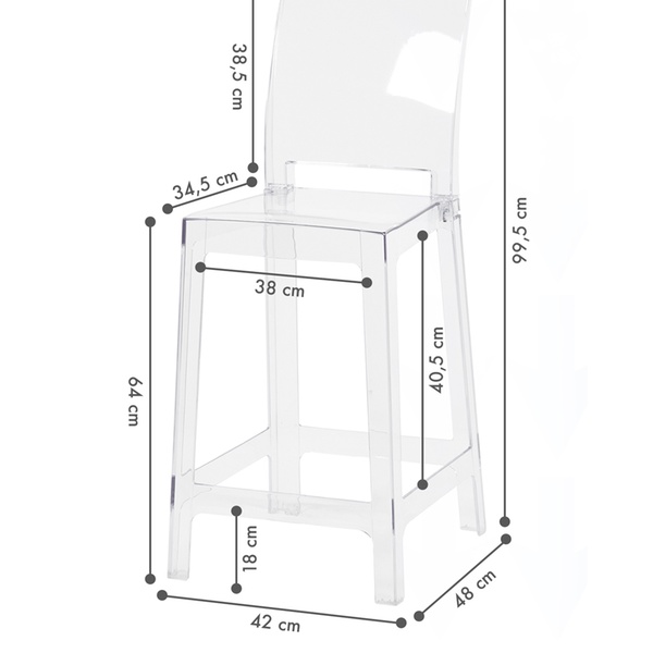 - Dimensiones: 99,5 (alto) x 42 (ancho) x 48 cm (profundidad) con altura del asiento de 64 cm
