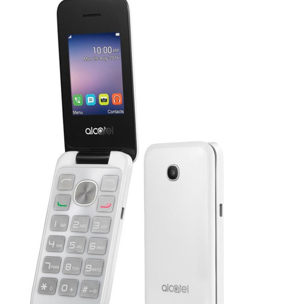 Teléfono móvil Alcatel blanco con cámara, Bluetooth, dual SIM y conector de audio de 3,5 mm