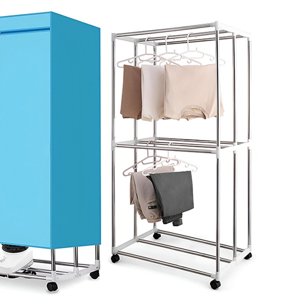 Groupon ofrece este tendedero vertical con secador eléctrico y ruedas, vendido por Zamika Store srl