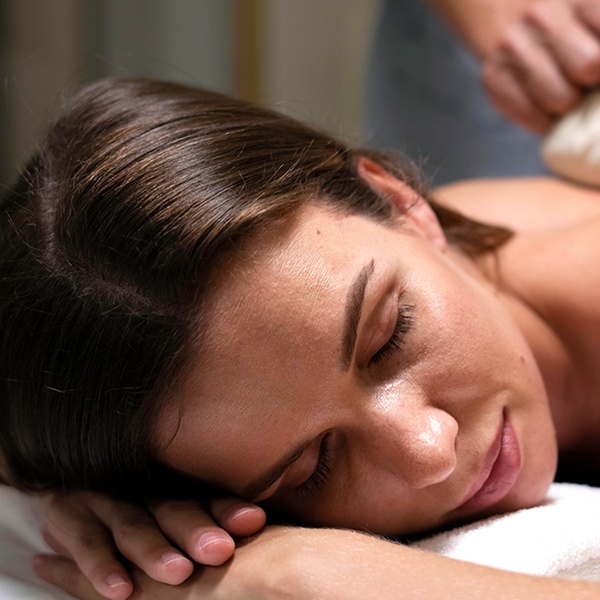 Masaje con pindas herbales: emplea saquitos de tela rellenos de hierbas medicinales calientes. Ayuda a descontracturar, desinflamar, mejorar la circulación y relajar cuerpo y mente.