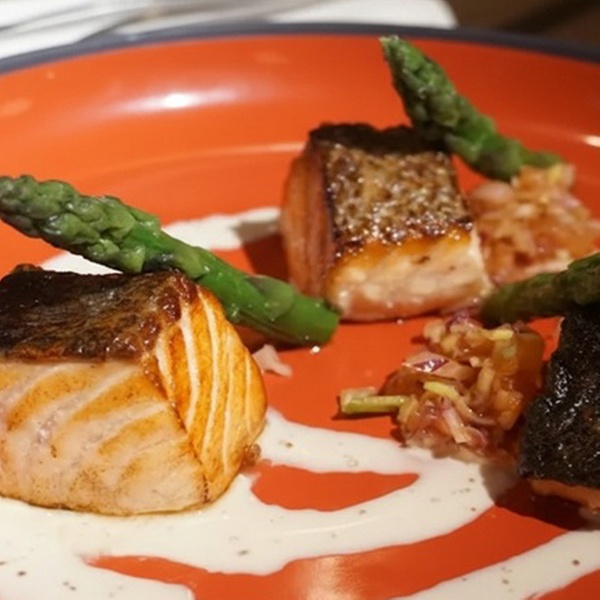 - Tataki de atún con cremoso de aguacate, ensaladita de hinojo fresco, hojas de tomate y salsa teriyaki