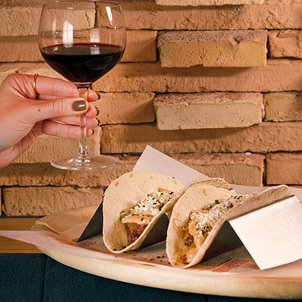 - Tacos de carrillera con emulsión de oporto, queso de cabra y cebolla caramelizada