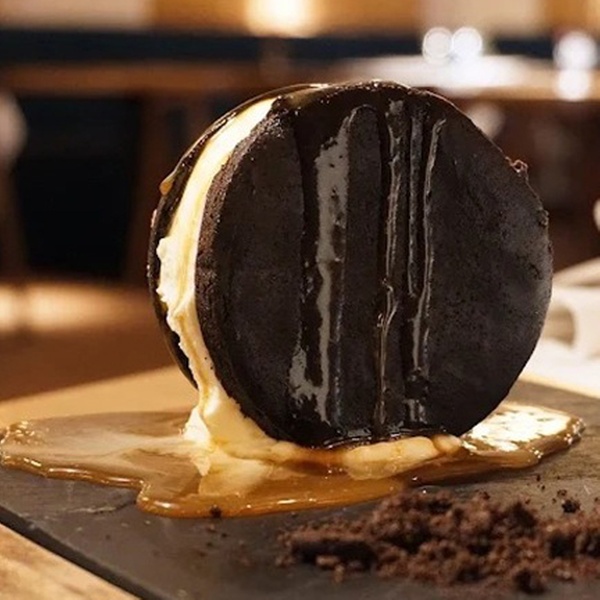 - Big Oreo casera con cremoso de mascarpone y salsa salt caramel