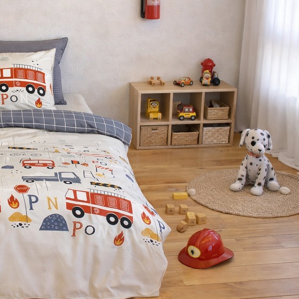 Dormitorio infantil con colecciones Bambina y Flammeche, juego de cama y alfombra coordinables para un conjunto completo y funcional