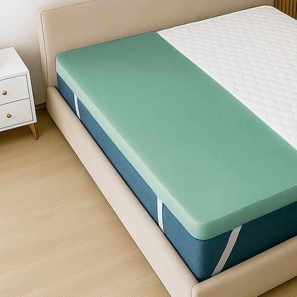 - Topper de 5 cm de memory foam puro, ergonómico y adaptable al cuerpo
