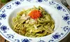- Spaghetti al pesto: pasta fresca con salsa al pesto genovese, nueces y láminas de parmesano