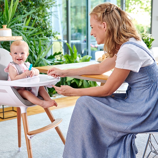 Esta trona de Kinderkraft dispone de una bandeja ajustable y extraíble, un revestimiento fácilmente lavable y un reposapiés práctico