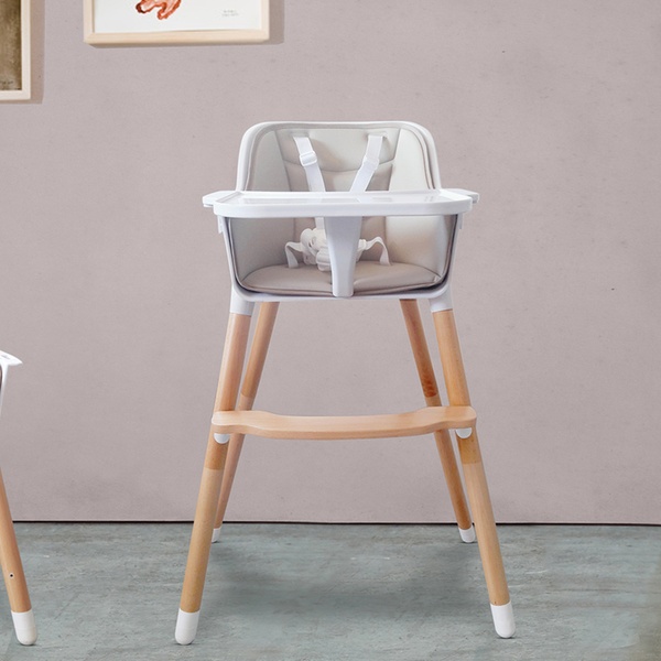 Esta trona para bebé posee reposapiés extraíble con bandeja móvil, asiento con vestidura y arnés de 5 puntos de seguridad desmontables