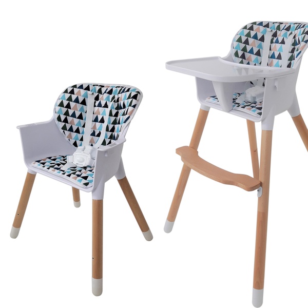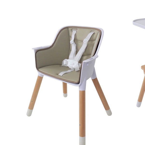 - Con bandeja móvil, asiento con vestidura y arnés de 5 puntos de seguridad desmontables
