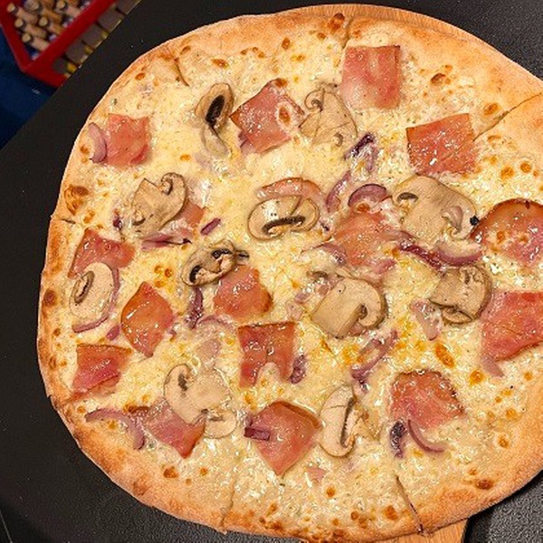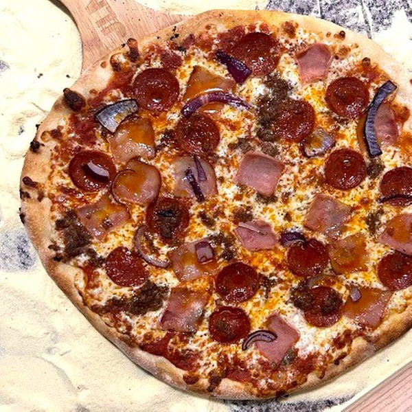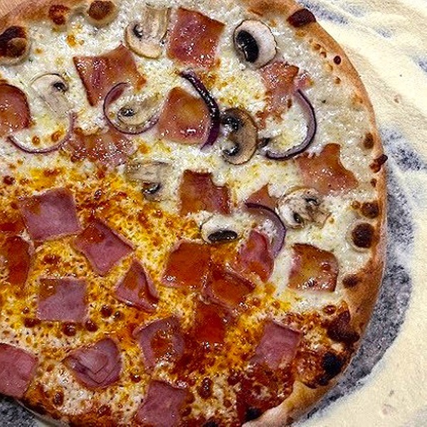 - Clásica: salsa de tomate, mozzarella, jamón york y orégano