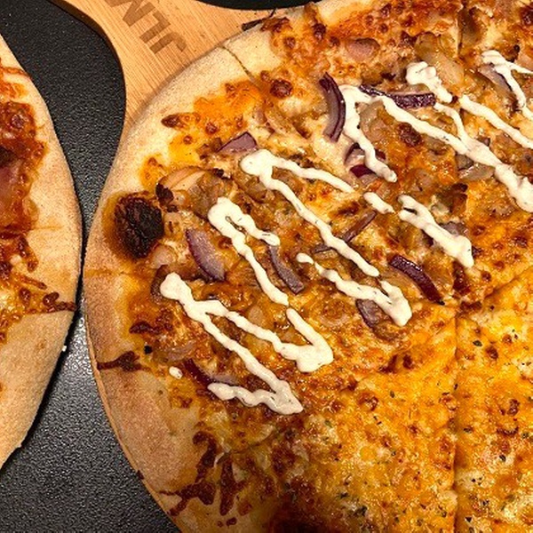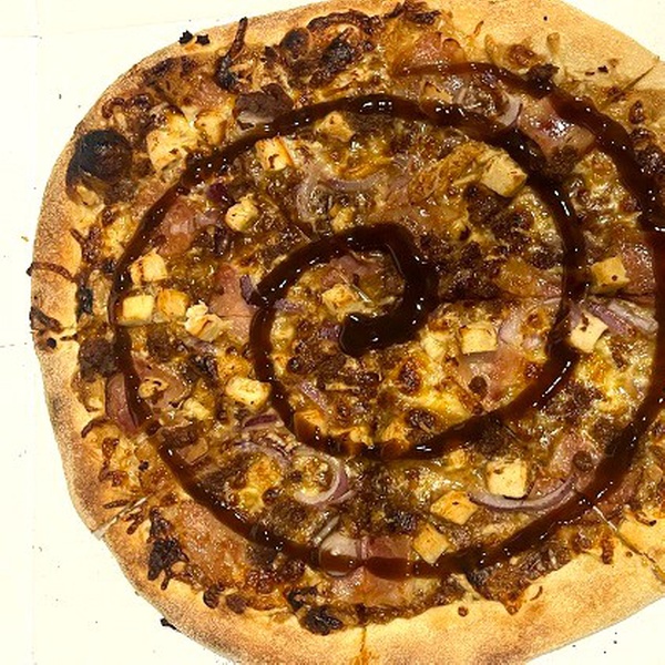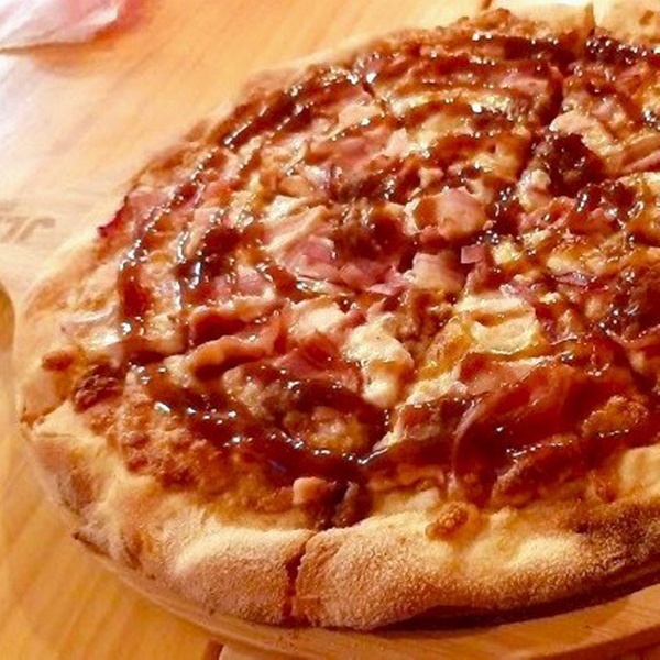 - Calzone BBQ: salsa barbacoa, mozzarella, ternera, pollo, bacon y cebolla