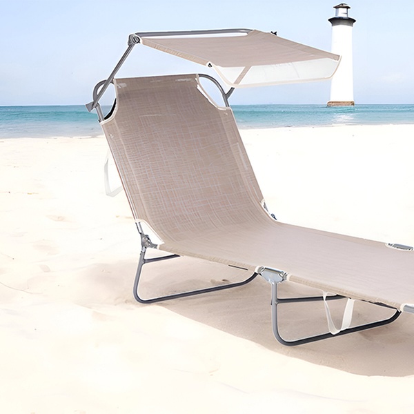 - Tumbona plegable con parasole integrado para protección solar