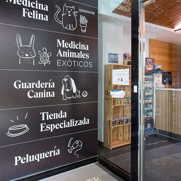 Clínica veterinaria especializada en medicina general, medicina felina y medicina de animales exóticos. Disponen de servicio de cirugía, diagnóstico por imagen y laboratorio propio. Un parking está a disposición de los clientes.