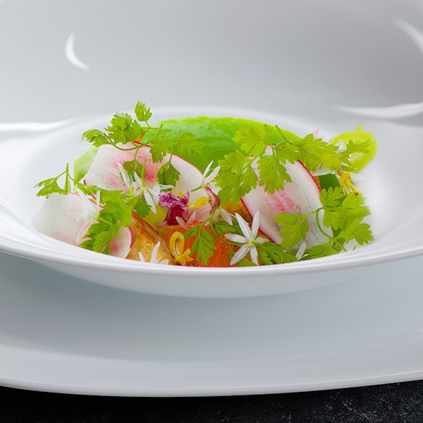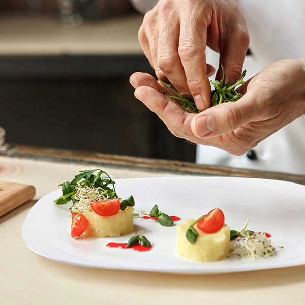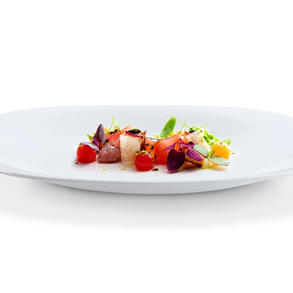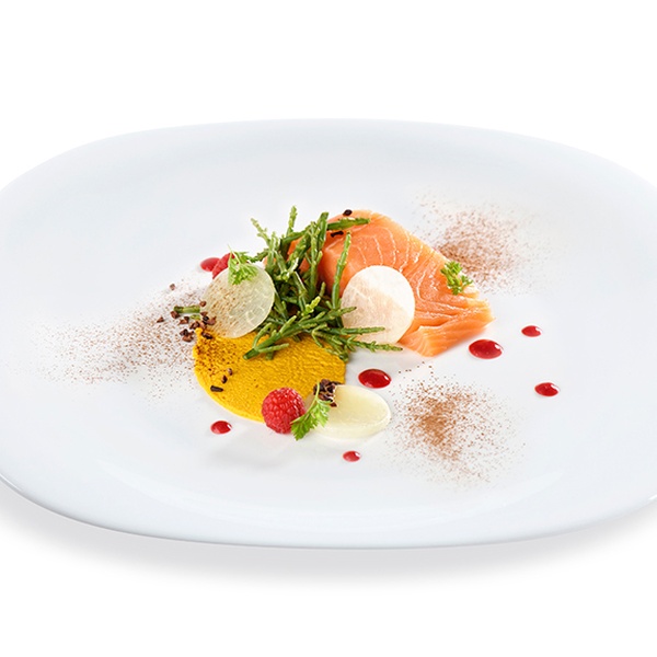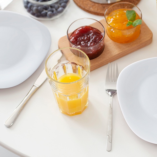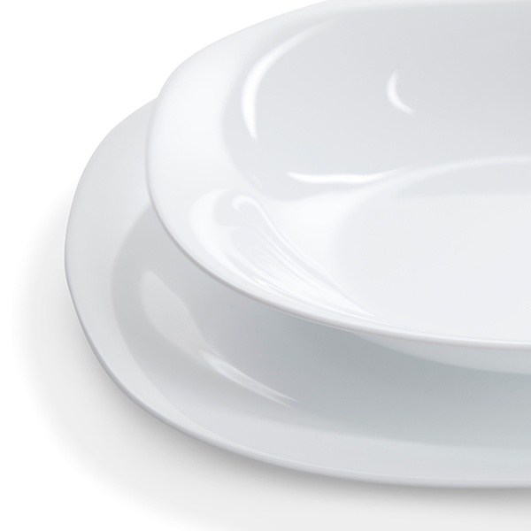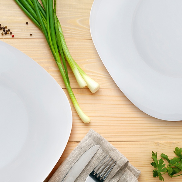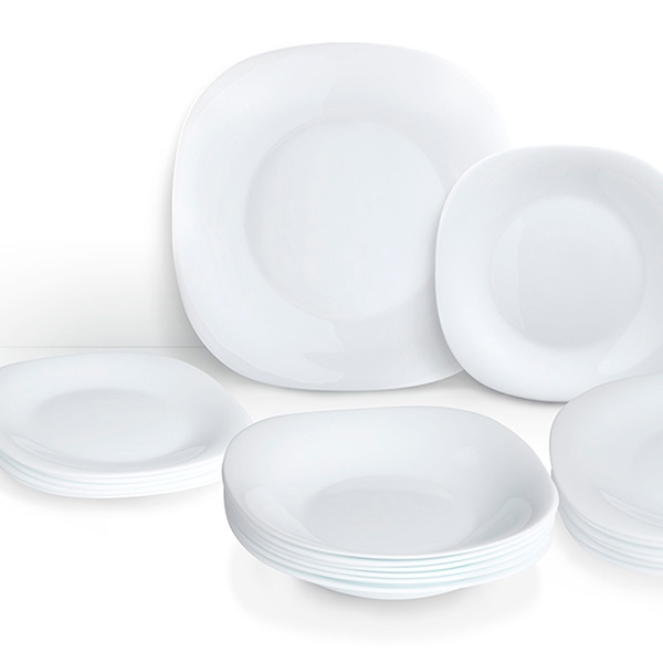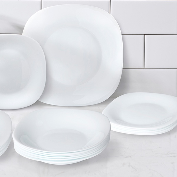 Vajilla hecha de vidrio opalino, un material que impide la absorción de sustancias externas gracias a su natural ausencia de porosidad