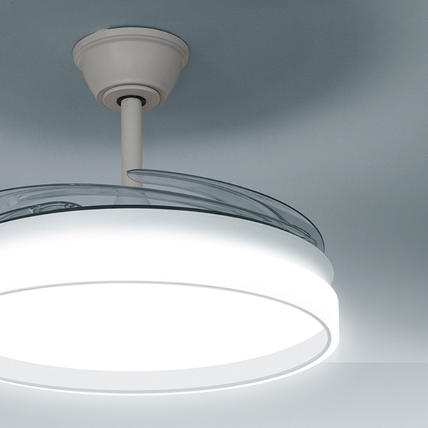 Refresca cualquier estancia con este moderno ventilador silencioso, con luces led y aspas retráctiles que se ocultan mientras no se usan