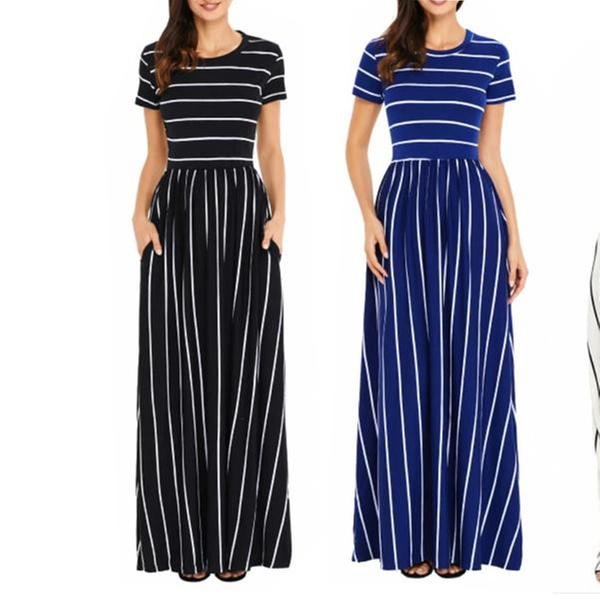 Vestido largo a rayas disponible en tres colores, ideal como ropa casual