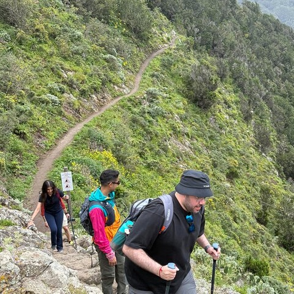 Adéntrate en el corazón salvaje de las montañas Anaga, donde el tiempo parece ralentizarse y cada vuelta del sendero abre un mundo nuevo. Antes de comenzar su caminata, hará una pausa en algunos miradores espectaculares, contemplando interminables crestas, acantilados oceánicos y la remota costa norte de Tenerife. El sendero circular de 7 km de altura, fácil de moderar, revela dos caras de la isla: las espectaculares laderas rocosas moldeadas por el viento y el tiempo, y el misterioso bosque de laurisilva, envuelto en niebla y lleno de canto de pájaros. Es un viaje entre mundos : desde los picos iluminados por el sol hasta el silencio verde. Disfrutarás de un picnic ligero rodeado de naturaleza: pasteles frescos, jugos, nueces y dulces. A lo largo del camino, tu guía capturará entre 20 y 30 fotos vibrantes de ti, para que lleves a casa algo más que recuerdos. Recogida desde la costa sur y Santa Cruz está incluido — solo relajarse y prepararse para explorar uno de los rincones más mágicos de Tenerife.