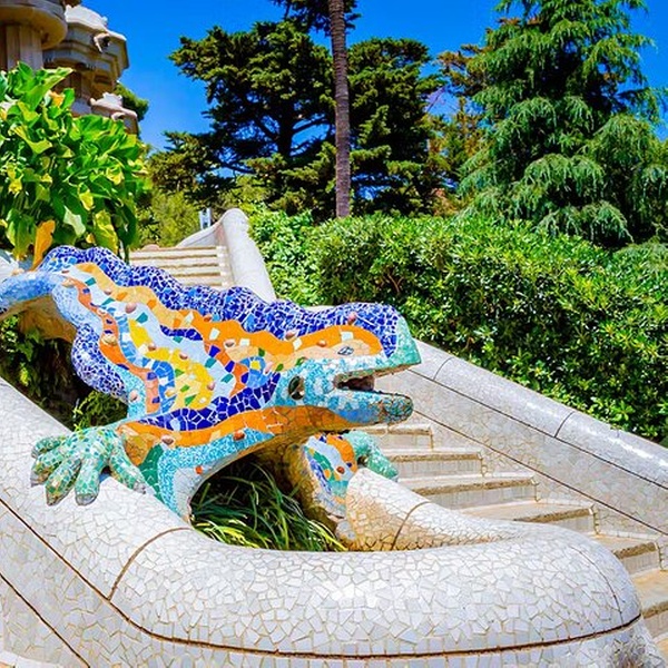 Plaza principal, sala de 100 columnas, salamandra Gaudí, etc.