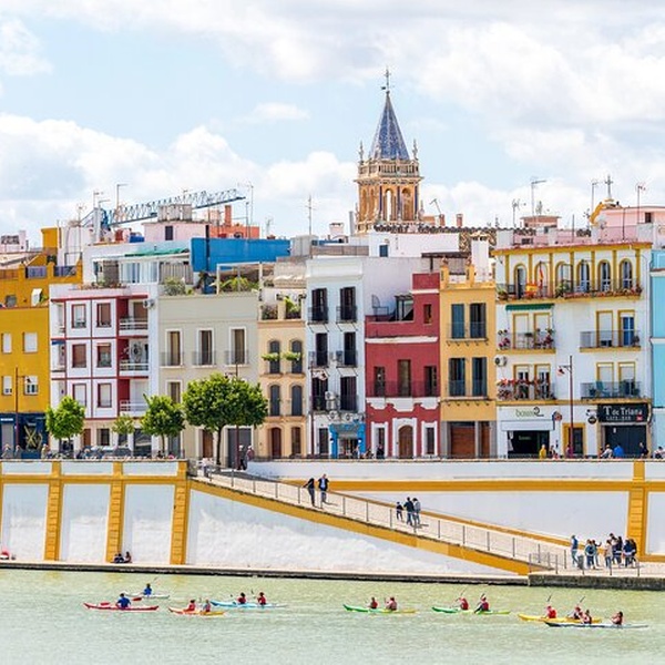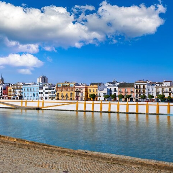 Pintoresca avenida junto al río Guadalquivir, famosa por sus coloridas fachadas, bares con vistas al agua y ambiente festivo.
