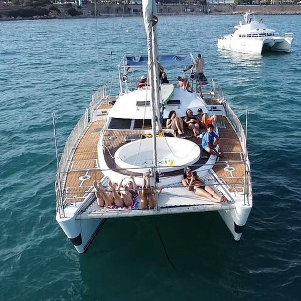Nuestro tour es una forma de conocer nuestra costa y disfrutar de un paseo en un bonito Catamaran con jacuzzi único en la.zona . También podrán disfrutar de un baño y equipos de snorkel y paddle.surf gratuitos . El barco dispone de baño y bebidas frias no incluidas en el precio . Hos garantizamos una experiencia única en un entorno inigualable.