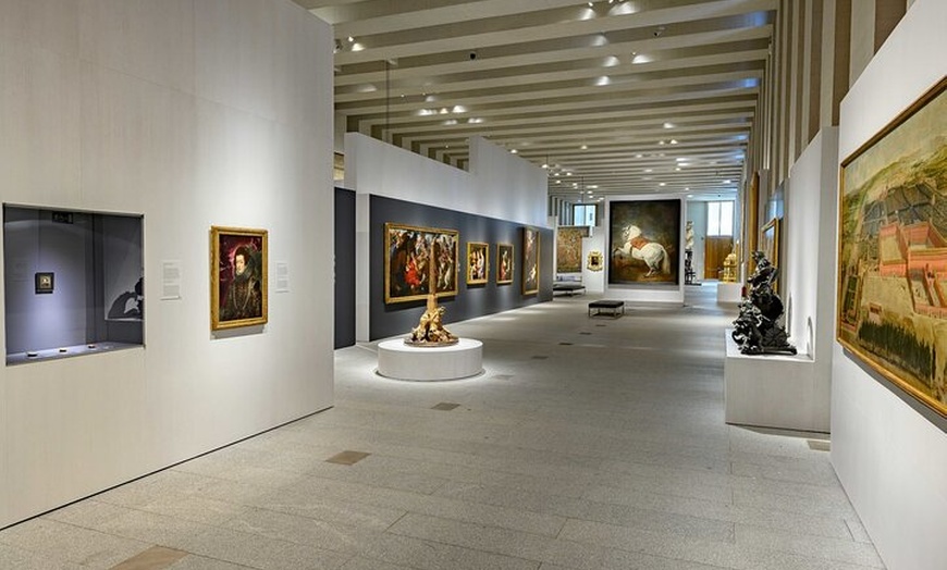 Durante esta visita guiada de 2 horas descubrirás la Galería de las Colecciones Reales, el museo más reciente y ambicioso de Madrid. Acompañado por un guía experto en arte e historia, recorrerás las salas que reúnen algunas de las piezas más valiosas del patrimonio de la monarquía española. Explorarás pinturas, tapices, esculturas, carruajes, armas y objetos históricos que forman parte de la historia de España. Conocerás las obras de grandes maestros como Velázquez, Goya, Caravaggio o El Bosco, y entenderás su importancia dentro de la historia europea. Tu guía te ofrecerá el contexto histórico y artístico de cada pieza, además de curiosidades y anécdotas sobre los reyes y reinas que las coleccionaron. Descubrirás cómo estas obras reflejan el poder, los gustos y las alianzas políticas de la monarquía española a lo largo de los siglos. La experiencia finaliza dentro del museo, donde tendrás tiempo para disfrutar por tu cuenta y repasar lo aprendido.