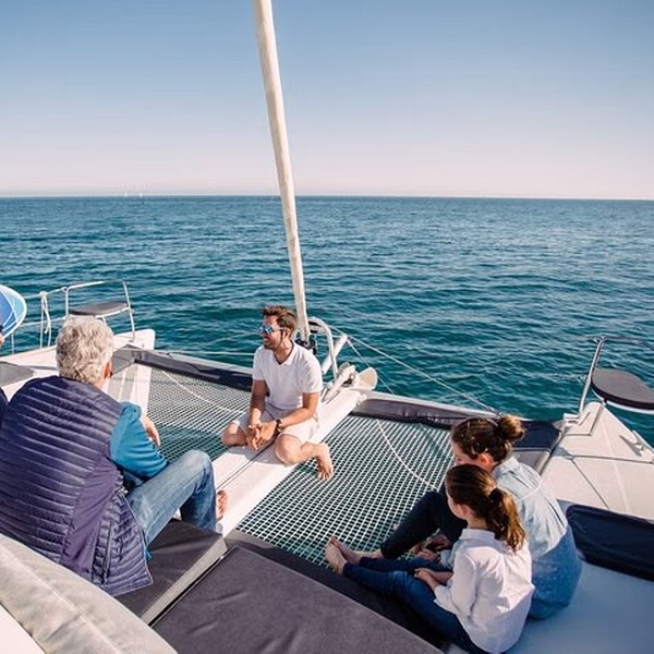 Navegar en catamarán en Benalmádena es la mejor manera de disfrutar de unas vacaciones de ensueño en familia o con amigos en los alrededores de Benalmádena y Málaga. El nuevo Lagoon 410 ofrece una combinación de lujo y confort a un bajo costo. Diversas salidas para disfrutar durante el día durante 2 horas : 10 : 00, 14 : 30 o puesta de sol 18 : 00h Relájese y tome el sol en la espaciosa red del catamarán, mientras navegamos y nuestro capitán intentará avistar delfines u otra vida marina. Si bien estos majestuosos animales son animales libres y no siempre podemos garantizarlo, cada tour es único y te da la oportunidad de reconectarte con la naturaleza. El tour en grupo en catamarán Lagoon 410 está diseñado para una capacidad de grupo íntimo de 12 personas, además de tripulación. Diseñado para navegar cómodamente con una gran terraza para tomar el sol y relajarse durante el crucero. Si el tiempo lo permite, podemos izar las velas y navegar mientras escuchamos las olas. Ideal para familias, observación de delfines, pesca, paseos en barco al atardecer, paddleboard, etc.