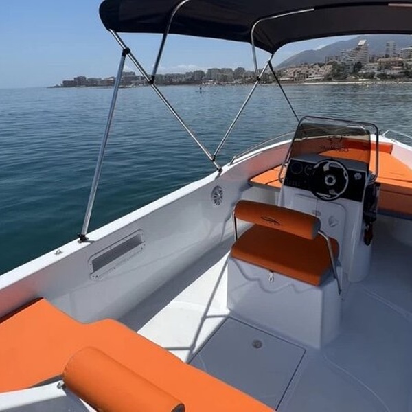 Navega por la hermosa Costa del Sol con este alquiler de barco sin titulación desde Puerto Banús. Ideal para grupos de amigos o familiares, este barco ofrece la libertad de explorar a tu propio ritmo. Disfruta de un día en el mar, creando recuerdos inolvidables sin necesidad de licencia de navegación. - Perfecto para disfrutar de un día de navegación con amigos o familiares - No se requiere titulación para alquilar - Explora la Costa del Sol a tu propio ritmo - Ideal para momentos de relax y diversión en el agua