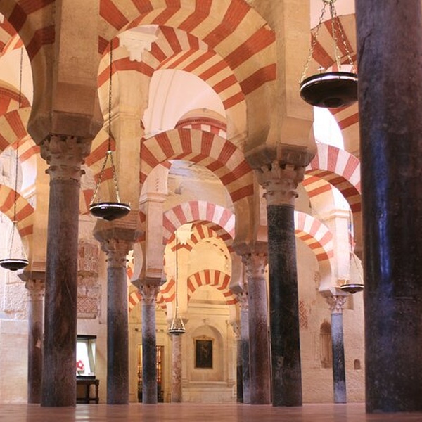 Grupos reducidos, visitas semi-privadas. Nuestro guía oficial de la Mezquita-Catedral les encontrará en el Patio de los Naranjos, donde comienza nuestra ruta. Continuaremos para conocer todo el Templo. Desde la Mezquita fundacional continuaremos recorriendo las distintas ampliaciones, de Abd-al Rahmán II, Al-Hakam I, y Almanzor. Podremos admirar el impresionante Mirhab y Kibla de la Mezquita de Córdoba. Veremos el crucero catedralicio, del Siglo XVI, admirando la impresionante Catedral, su altar mayor, crucero y el maravilloso Coro. Su solemnidad a lo largo de los siglos, ha provocado arrodillarse ante sus arcos o postrarse ante sus cruces. Límite material de lo divino y de lo humano, refugio de arte y técnicas constructivas, asilo de materiales saqueados de un pasado de esplendor. La Mezquita Catedral de Córdoba, nos abre sus puertas y nos adentra en una dualidad casi infinita, como si sus dovelas bicromáticas acontecieran la inexorable unión de dos mundos, Oriente y Occidente.