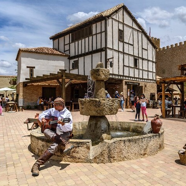 El parque cuenta con una gran cantidad de espectáculos maravillosos adecuados para toda la familia, donde se representan actos de personajes famosos de la historia Española, como El Cid Campeador, Cristóbal Colón, o Lope de Vega. También hay una exposición aérea con más de 200 aves de rapiña y espectáculos ecuestres. Además de todo esto, podrás degustar una gran variedad de gastronomía típica Española en sus diversos bares y restaurantes. Como broche final, disfrutarás del impresionante espectáculo nocturno "El Sueño de Toledo", en el que más de 200 actores y jinetes representan 1500 años de historia en un enorme escenario. Tenga en cuenta que este espectáculo no está disponible durante la temporada de Navidad.