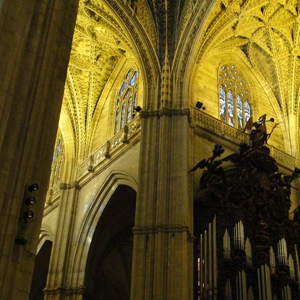Explora no solo una de las iglesias más grandes del mundo, sino también un fantástico museo con notables obras de arte. Un agradable paseo por los diferentes estilos utilizados para construir sus cinco naves y más de cuarenta altares y capillas. Nos detendremos en los más interesantes, compartiendo curiosidades como tumbas vacías, fotos robadas, o la Virgen venerada por comerciantes y marineros para sobrevivir a los peligrosos viajes transoceánicos. Destacaremos el retablo más grande de todo el cristianismo, en la Capilla Mayor, y el coro sentado frente a ella. Así como el enorme mausoleo de Cristóbal Colón, lleno de símbolos.