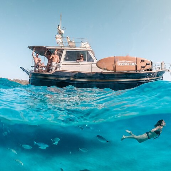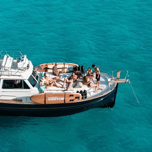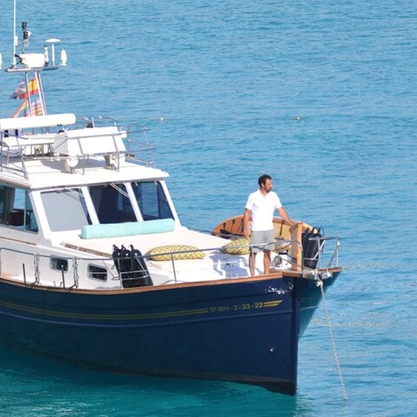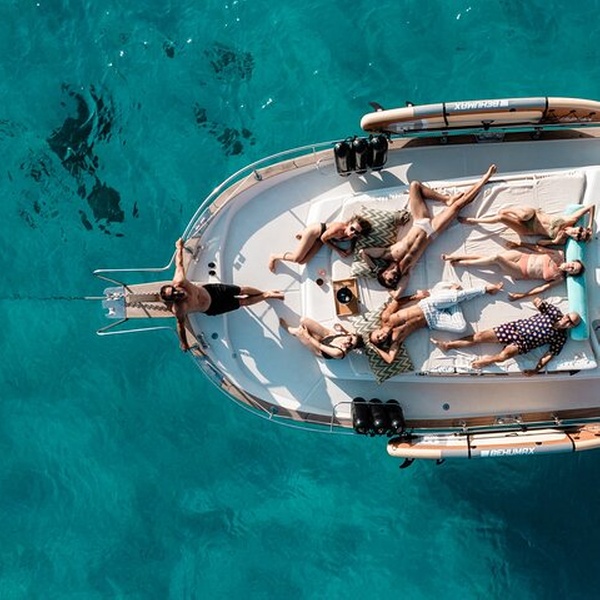 Navega hacia el atardecer en un Llaüt balear Aruna está equipada con una gran plataforma de baño, una amplia terraza para tomar el sol, dos neveras y un baño. IT trata de un barco construido para disfrutar del mar Mediterráneo. Renovada con amor, ella es única en su clase. A bordo se incluyen dos nuevas tablas de SUP, equipo de buceo y bebidas (una botella de cava, cervezas y refrescos). La comida no está incluida; sin embargo, puede traer la suya propia, o también podemos organizar reservas en un restaurante para su día en Aruna. Capitán, Deckhand y combustible incluido en el precio.