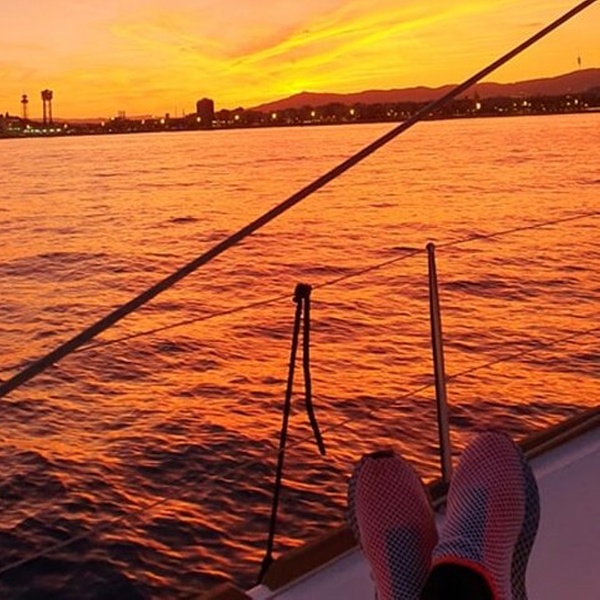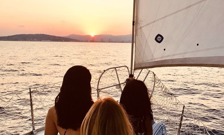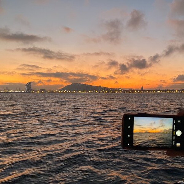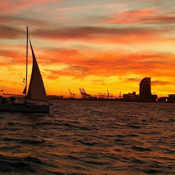 Únete a un hermoso viaje privado de 2 horas en velero al atardecer frente a la costa de Barcelona con tu grupo en un velero moderno. Disfruta de la experiencia única de navegar cuando oscurece lentamente y el sol lo colorea todo de rojo. Disfruta de una brisa fresca, una bebida gratis y un pequeño aperitivo mientras contemplas el horizonte de Barcelona. A medida que el sol se sumerge bajo el horizonte, observa cómo el horizonte de Barcelona se transforma bajo un brillo dorado-rojo. Siente la suave brisa del mar mientras navegas hacia el crepúsculo con tu grupo privado de hasta nueve personas y un patrón experimentado al frente.
