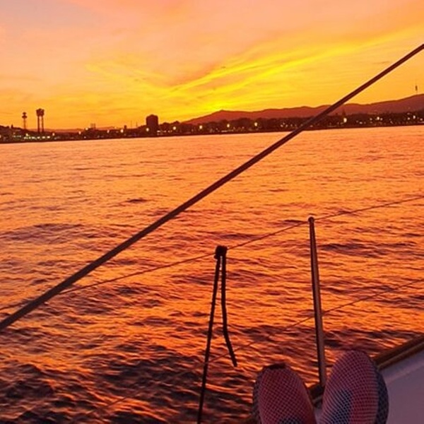 Únete a un hermoso viaje privado de 2 horas en velero al atardecer frente a la costa de Barcelona con tu grupo en un velero moderno. Disfruta de la experiencia única de navegar cuando oscurece lentamente y el sol lo colorea todo de rojo. Disfruta de una brisa fresca, bebidas gratis y pequeños aperitivos mientras contemplas el horizonte de Barcelona. A medida que el sol se sumerge bajo el horizonte, observa cómo el horizonte de Barcelona se transforma bajo un brillo dorado-rojo. Siente la suave brisa del mar mientras navegas hacia el crepúsculo con tu grupo privado de hasta ocho personas y un patrón experimentado al frente. Tu experiencia de navegación viene con música en vivo. Para un toque inolvidable, un guitarrista español forma parte de tu viaje. Deja que las melodías conmovedoras armonicen con las olas, creando un ambiente sereno y romántico, perfecto para parejas, amigos y amantes de la música.