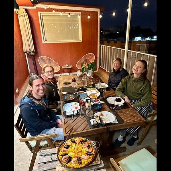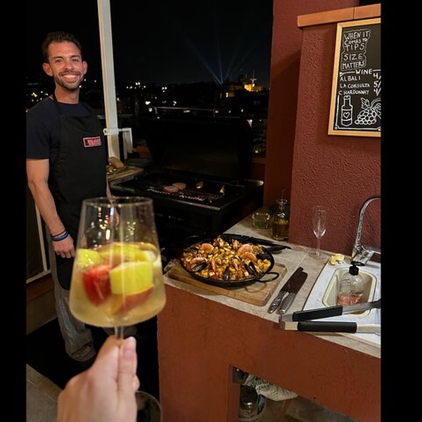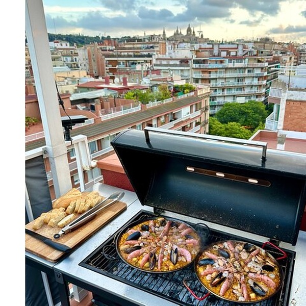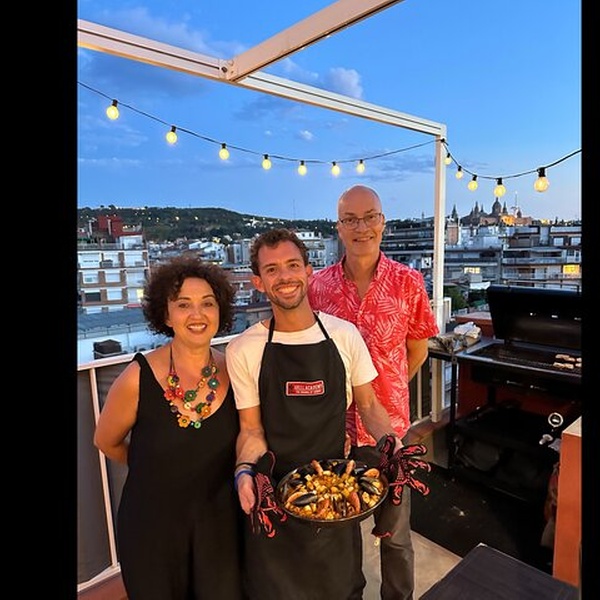 ✨ ¡Haz de tu visita a Barcelona una experiencia única! ✨ ¿Te imaginas cocinar una auténtica paella de carbón en una terraza con espectaculares vistas de la ciudad? Esta actividad te llevará a disfrutar de lo mejor de la gastronomía española mientras aprendes a preparar una deliciosa paella al estilo tradicional, utilizando carbón vegetal para un sabor inigualable. Además, mientras cocinamos, podrás admirar el impresionante paisaje de Barcelona, ¡una combinación perfecta de sabores y vistas! ¡Esta actividad es perfecta para viajeros individuales, parejas, familias o grupos!