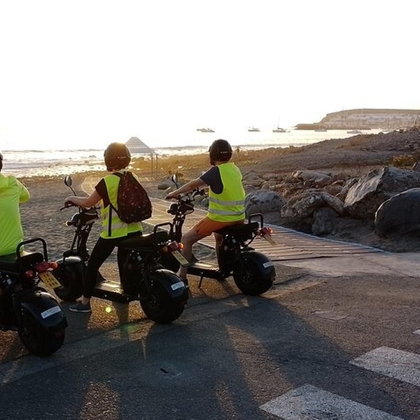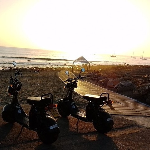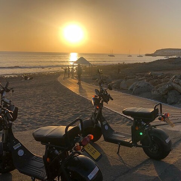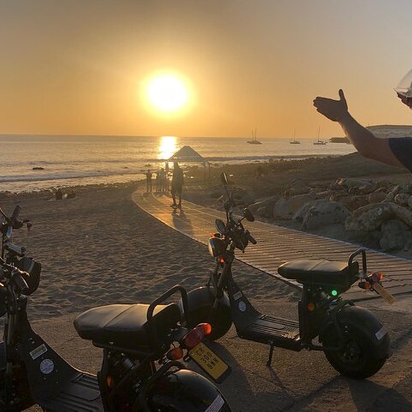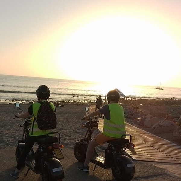 Pruebe este increíble y ecológico tour de 2 horas al atardecer o tour matutino en E-scooter Chopper. Un lugareño le mostrará una increíble vista panorámica del atardecer de Playa del Inglés y Maspalomas: Dunas de Maspalomas, el Oasis de Maspalomas, Playa Meloneras, Playa del Inglés vista panorámica. Visitaremos la zona más exclusiva del sur y disfrutaremos de una espléndida vista al mar. Un refresco incluido durante la parada en la "Charca de Maspalomas". No está permitido conducir e-scooter dentro de las Dunas, en la arena y fuera de la carretera. Conducirás por la calle. Requerido Mínimo 15 años para conducir un E-scooter con licencia de conducir original o digital AM y mínimo un padre de pago.