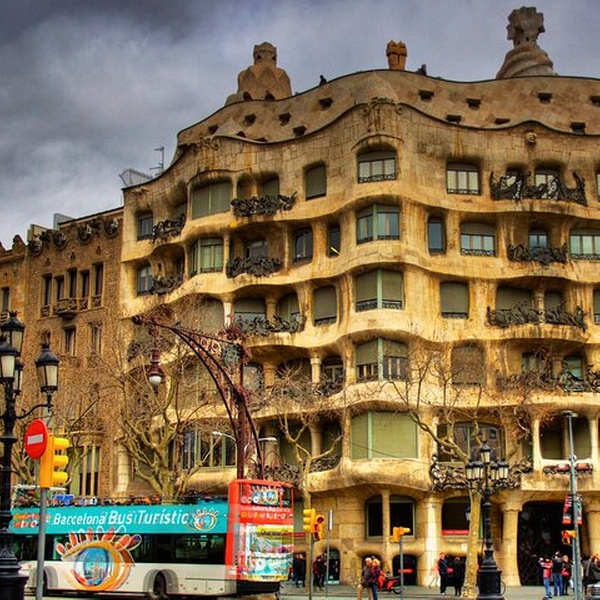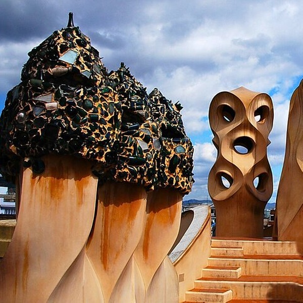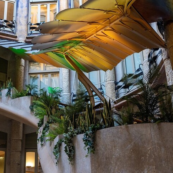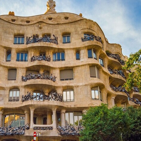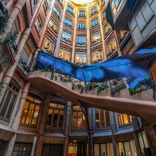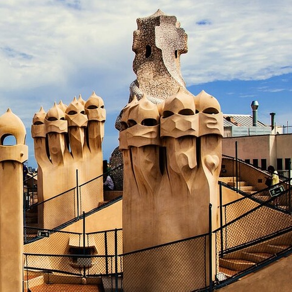 Explora el mundo surrealista y fascinante de la Casa Mila de Antoni Gaudí, también conocida como La Pedrera, con nuestras entradas programadas y audioguía. Este Patrimonio de la Humanidad de la UNESCO es famoso por su fachada ondulada de piedra, balcones de hierro forjado y chimeneas surrealistas. El diseño del edificio está inspirado en formas naturales, como olas, flores y árboles.
