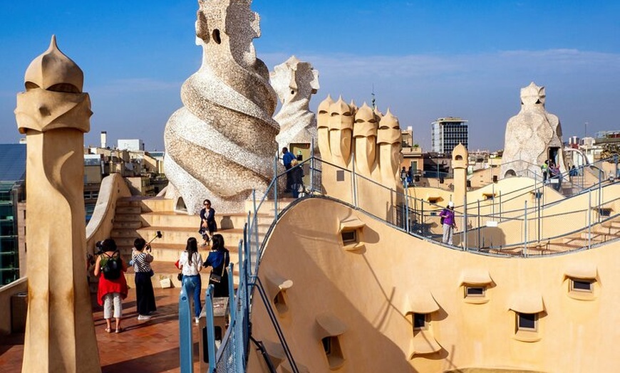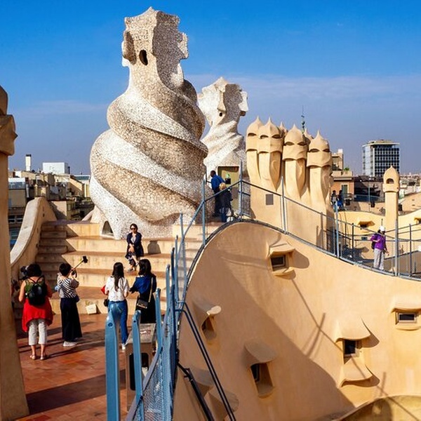 Explora el mundo surrealista y fascinante de la Casa Mila de Antoni Gaudí, también conocida como La Pedrera, con nuestras entradas programadas y audioguía. Descubre esta emblemática creación de Antoni Gaudí, Patrimonio de la Humanidad por la UNESCO, reconocida por su fachada ondulada de piedra, sus balcones de hierro forjado y sus chimeneas surrealistas. El diseño del edificio está inspirado en formas naturales, como olas, flores y árboles. Explora el Patio de Mariposas, la Azotea del Guerrero, el Ático Ballena (exposición Gaudí), el Apartamento de los Inquilinos y el Patio de Flores para adentrarte en el universo de Antoni Gaudí. Disfruta de una experiencia de primera mano de cómo la naturaleza inspiró este edificio único y dirígete a la azotea para admirar sus formas sinuosas y las chimeneas caprichosas de cerca.