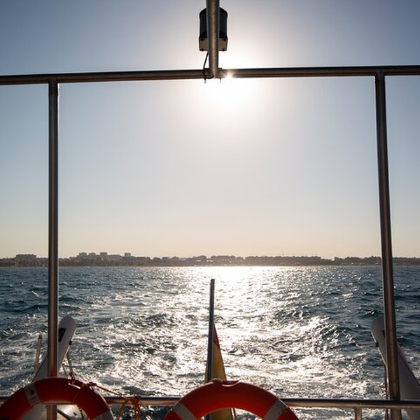 Salimos desde el Tinglado nº2 de la Marina de Valencia junto al Edificio del Reloj. Siéntete un privilegiado y disfruta de las vistas de la Marina y de las cautivadoras playas de Valencia. Además te obsequiamos con una bebida de bienvenida. El catamarán cuenta con cubierta, comedor cerrado y baños
