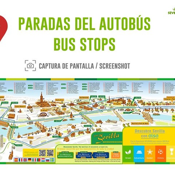 Súbete a nuestro bus turístico de Sevilla de dos pisos con techo descubierto y verás la ciudad de una forma especial. Ponte a la altura de sus edificios más emblemáticos, descubre su historia milenaria, rodea la Muralla de la Macarena y mira de frente a la Torre del Oro en un paseo en el que podrás sentir la energía del sol y del cielo azul de Sevilla. Haz tu propio itinerario y disfruta de las 14 paradas distribuidas por Sevilla. Con un ticket podrás disfrutar durante 48 horas de nuestros diferentes tours: Monumental, Sevilla Romántica/ Iluminada y de los tours a pie por el Barrio Santa Cruz y Triana. Disfruta de la comodidad de nuestros autobuses de dos plantas con calefacción y aire acondicionado, adaptados a personas con movilidad reducida, con audio en 9 idiomas y comparte tu experiencia en redes gracias a nuestro servicio de wifi gratuito. ¿Te has quedado con ganas de más? Sube y baja del bus todas las veces que quieras durante 48 horas!! ¡Te esperamos!